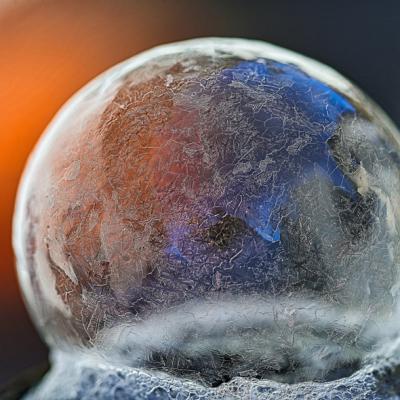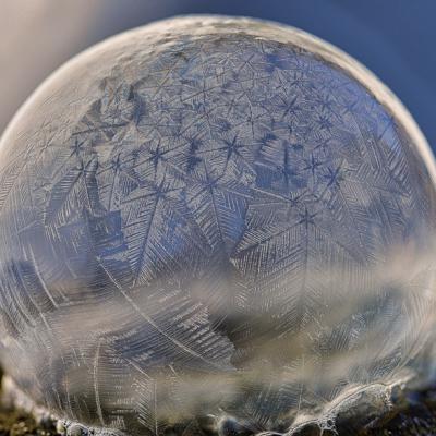 Gefrorene Seifenblasen, Eis und Schneekristalle im Winter
